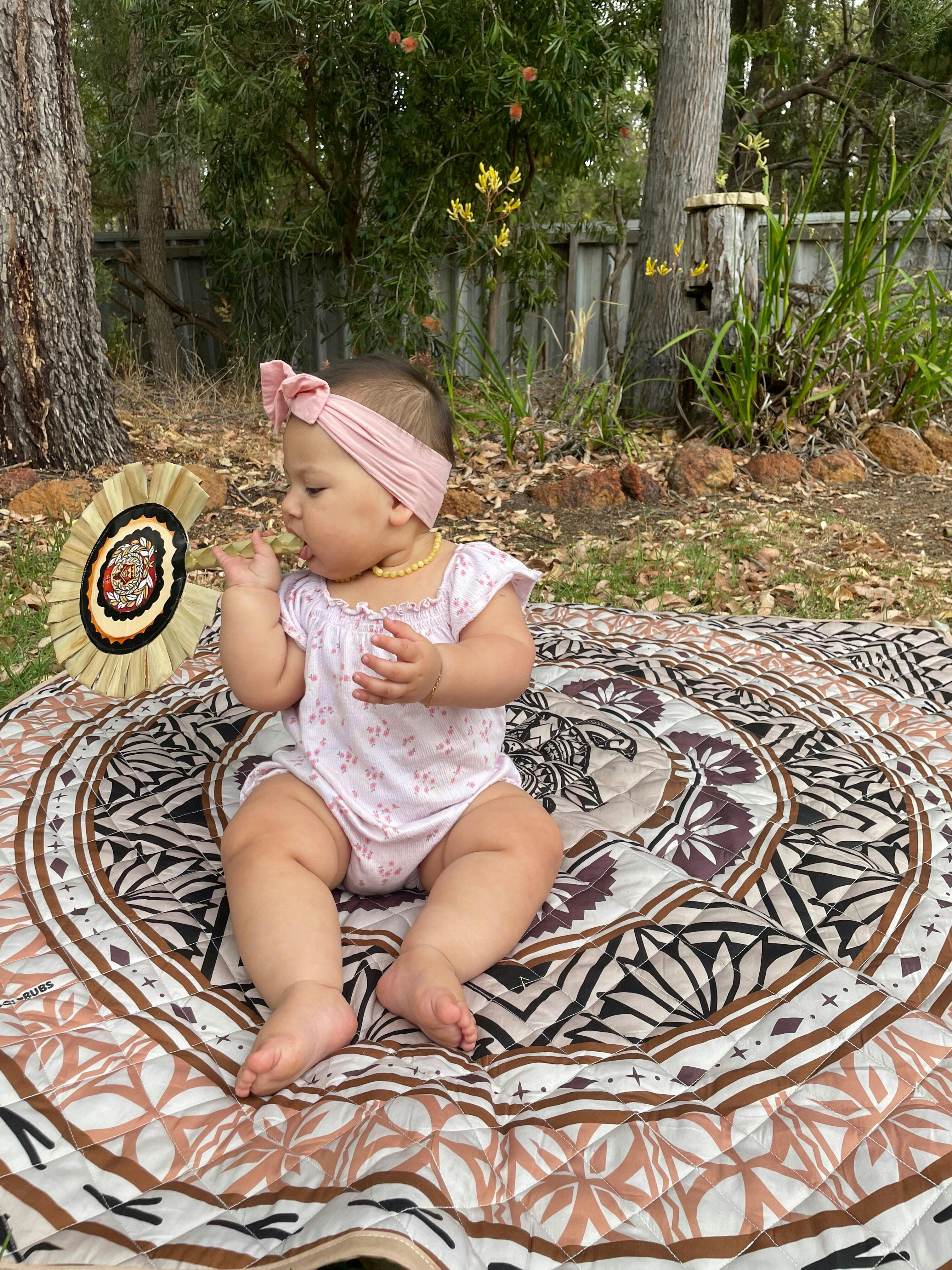 Purchased the pink play mat, Samoan Muslim wrap and the Tongan Muslim wrap for a baby sprinkle for a friend. All pieces are absolutely beautiful. Mother to be again loved her gift. Amazing quality and the patterns are stunning. Definitely will purchase again.